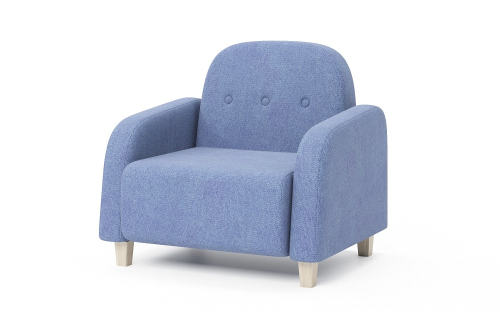 Кресло размещается на четырех деревянных опорах. Мягкие закругленные подлокотники и спинка обеспечивают комфорт посадки. В конструкции отсутствуют острые углы.