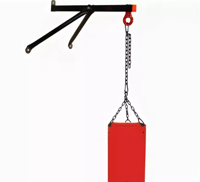Кронштейн с анкерами крепится к стене. В наличии система регулировки расстояния. Конструкция позволяет устанавливать подвесы и удерживать боксерский мешок во время тренировочных занятий в школе.