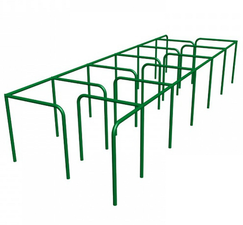 Лабиринт для уличной полосы препятствий (спортивного городка), предназначен для физической подготовки учащихся на пришкольной территории. Сборная металлоконструкция состоит из цельносварных модулей. При установке элементы соединяются и выравниваются по центральной оси конструкции. Изделие обработано полимерно-порошковым покрытием, обладающим повышенной стойкостью к ультрафиолету и неблагоприятным атмосферным воздействиям