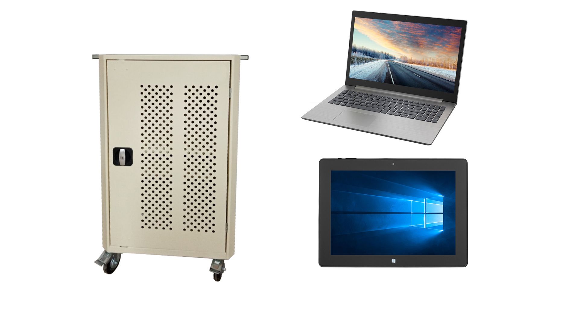 - тележка-сейф: 1560х1025х430 мм, 50 кг, стальной корпус на колесах, перфорированная дверца на ригельном замке, 2 выдвижные полки с перегородками, внутри хранятся и заряжаются планшеты, вместимость на выбор: