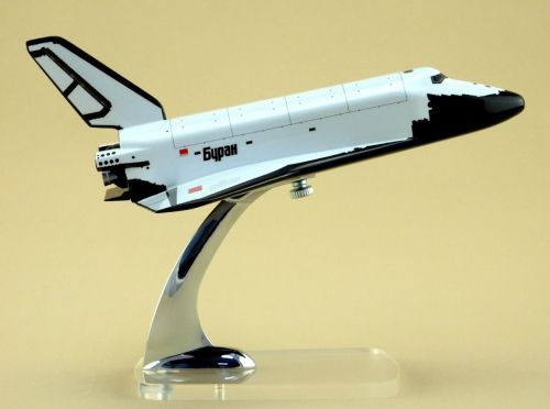 В комплект входят настольная модель космического корабля и подставка с прозрачным основанием и хромированной металлической ножкой.