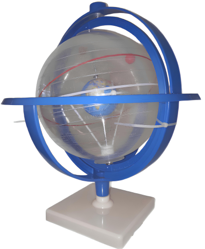 Модель позволяет имитировать суточное вращение светил. Внутри сферы проходит красная линия для отображения перемещений Солнца за год.