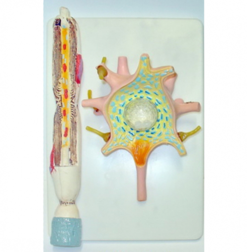 Модель нейрона состоит из тела нейрона с отростками, прозрачной ядерной оболочки и 2 шариков, которые обозначают ядрышки. Позволяет изучить детали внешнего и внутреннего строения нервной клетки: