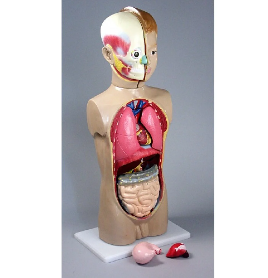 | следующих частей | туловище человека;, голова человека в разрезе;, легкие;, сердце;, печень;, желудок;, тонкий и толстый кишечник |