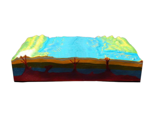 Модель не разбирается. Макет позволяет рассмотреть, как меняются пласты земной коры под морем вследствие извержения вулканов.
