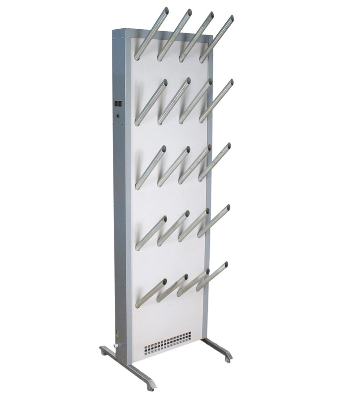 Представляет собой металлический корпус со съемными патрубками, на которых размещается обувь. В нижней части корпуса установлен блок нагрева, нагнетающий теплый воздух внутрь корпуса, который затем выходит через отверстия в съемных патрубках. Состоит он из тангенциального вентилятора, одного игольчатого слюдяного нагревателя, датчика контроля температуры и электронного блока управления. Кнопочное управление осуществляется через панель, расположенную на боковой стенке корпуса.