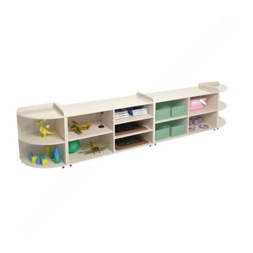 Многофункциональный стеллаж подходит для хранения игрушек и дидактических материалов в ДОУ и школе. Состоит из 4-х модулей, которые легко расставлять в различной конфигурации. Можно поставить этот комплект у стены или посередине помещения, разграничив игровые зоны.