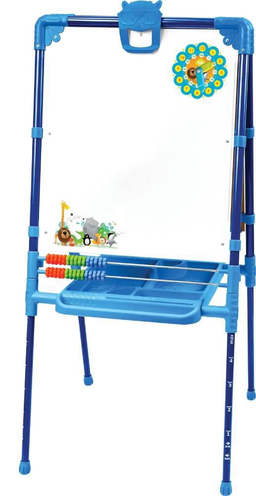 Устойчивый и удобный мольберт с двумя рабочими поверхностями – грифельной доской и белой поверхностью. Обе — магнитные. Подходит для творчества юных художников.
