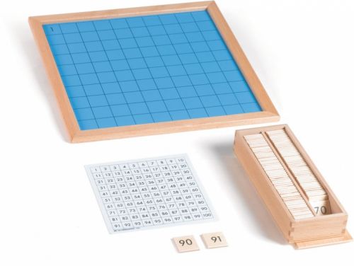 деревянный ящик с пластинками (числа от 1 до 100),, контрольная карта,, доска деревянная синяя