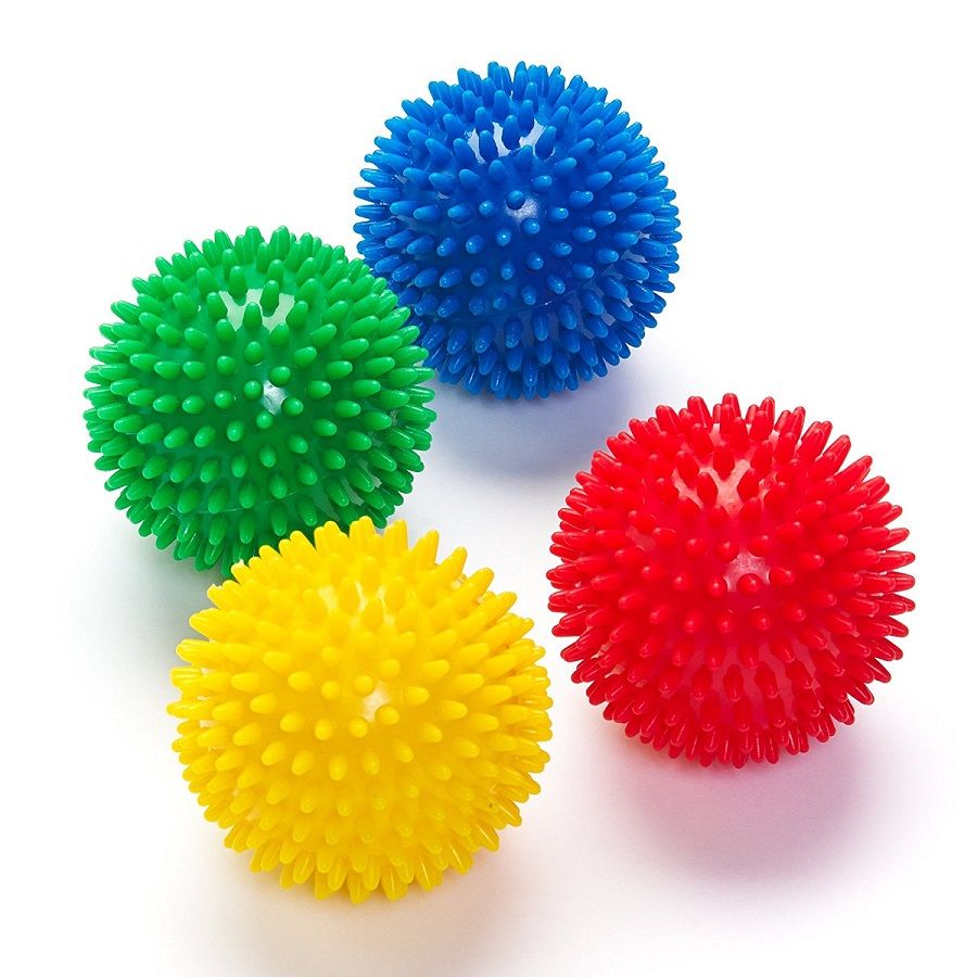 Цветной мячик для массажа и реабилитации покрыт мягкими шипами, которые не травмируют кожу. Изделие не блекнет и легко моется. С помощью мячиков дошкольники развивают хватательный рефлекс, тренируют ловкость и меткость, скорость реакции.