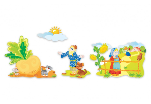 | В комплекте 4 декоративных элемента с рисунками | репка, 1100х900 мм,, дед и собака, 700х700 мм,, бабушка и внучка, 1200х780 мм,, туча и солнце, 330х660 мм |