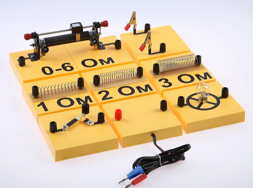 Изучаемые темы: составление электрической цепи, измерение силы тока амперметром, измерение напряжения вольтметром, измерение сопротивлений, зависимость силы тока от сопротивления и напряжения, устройство переменного резистора, последовательное и параллельное соединение проводников, действие плавкого предохранителя, нагревание проводника электрическим током, определение мощности электрического тока.