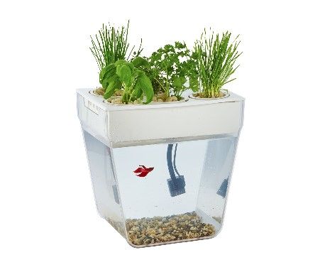 Сочетает функции самоочищающегося аквариума и платформы для выращивания растений. Отходы с помощью насоса поднимаются к горшочкам сверху и питают растения, а рыбки взамен получают чистую воду.