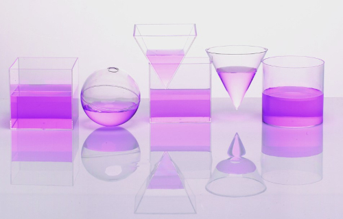 В наборе представлены прозрачные емкости различной формы. Их можно заполнять жидкостью, песком или другим сыпучим материалом.