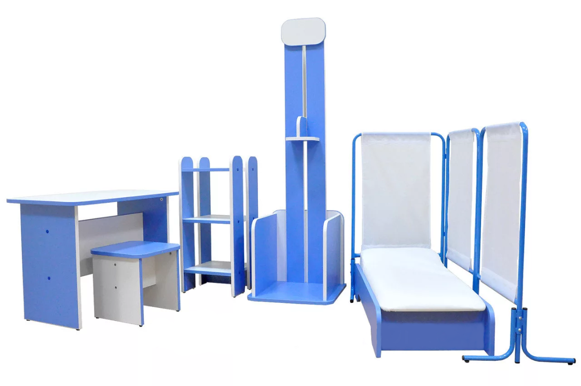 Детская игровая мебель»Поликлиника» рекомендуется для использования в игровой комнате ДОУ.