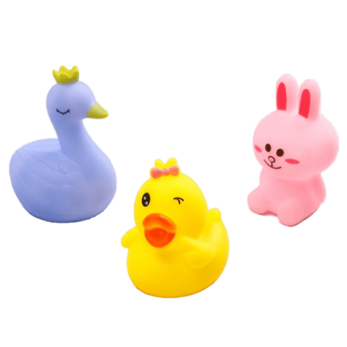 В наборе 3 фигурки для развития тактильных ощущений и мелкой моторики. Упругие игрушки в виде животных пищат и легко восстанавливают форму, их можно брать с собой во время купания.