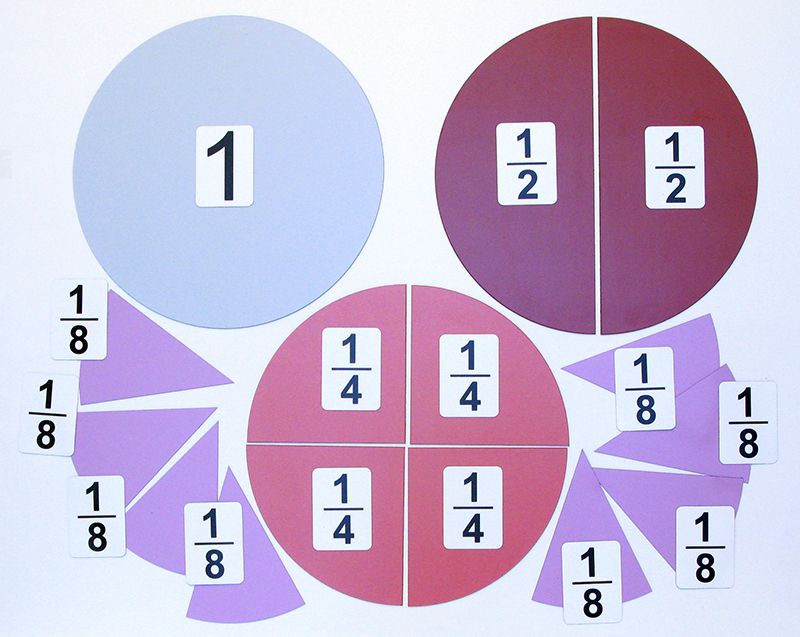 В наборе 30 магнитных карточек: 15 цветных в виде равных частей круга и 15 белых с указанием величины дроби от 1 до 1/8. Предназначен для наглядного изучения темы “Дроби”. Подходит для магнитной доски.