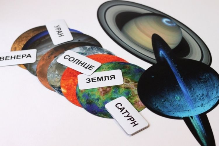 - карточки с названиями планет — 10 шт.;