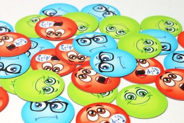 Предназначен для обучения анализу буквенного и звукового состава слова в игровой форме. Красные смайлики указывают на гласные буквы, синие – на глухие согласные, а зеленые – на звонкие.