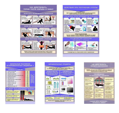 | В комплекте | Безопасные расстояния до взрывоопасных предметов;, Взрывоопасные предметы;, Как действовать, попав в заложники;, Действия при получении угрозы;, Как действовать, попав после взрыва в завал |