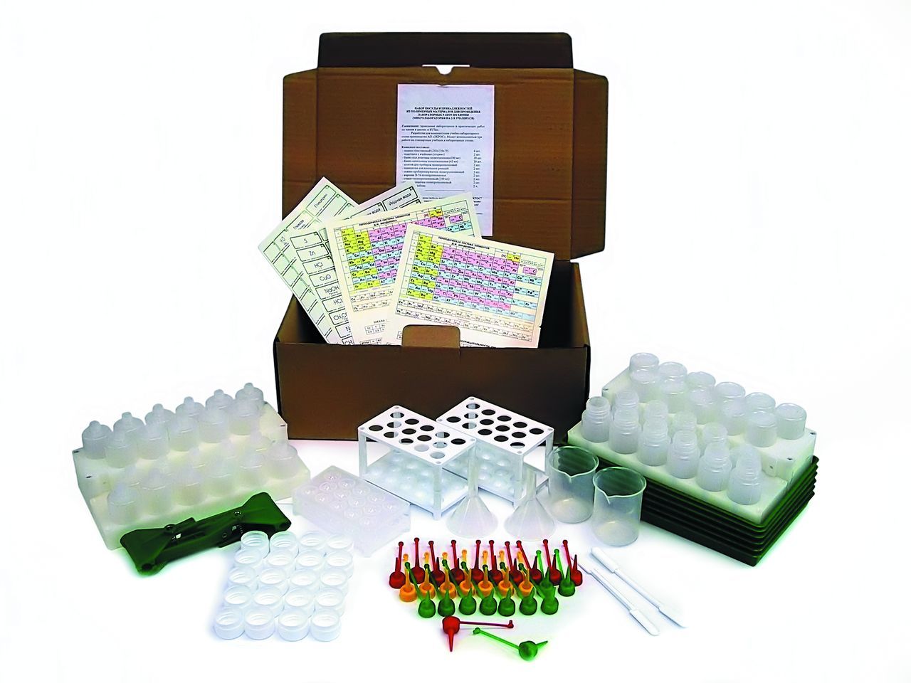 Безопасная и долговечная лабораторная посуда сопровождается инструментами и приспособлениями для проведения опытов на уроке химии в школе.