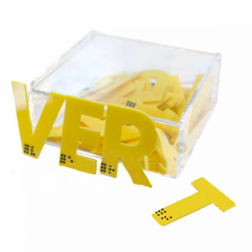 Тактильный набор включает в себя 26 пластиковых букв английского алфавита с нанесенным на них шрифтом Брайля. С помощью набора слабовидящие дети смогут изучить на ощупь формы букв и узнать, как они пишутся шрифтом Брайля.