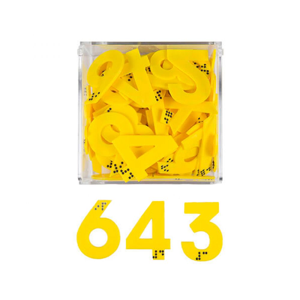 Тактильный набор состоит из 50 цифр и 36 знаков с нанесенным на них шрифтом Брайля. С помощью набора слабовидящие дети смогут изучить на ощупь формы цифр и узнать, как они пишутся шрифтом Брайля.
