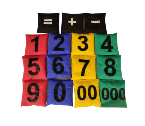 Каждый мешочек пронумерован и наполнен специальными гранулами из пластика. Рельефные изображения цифр и 4 цвета мешков помогают запоминать числа, сортировать предметы. Комплект подходит для коррекционных занятий.