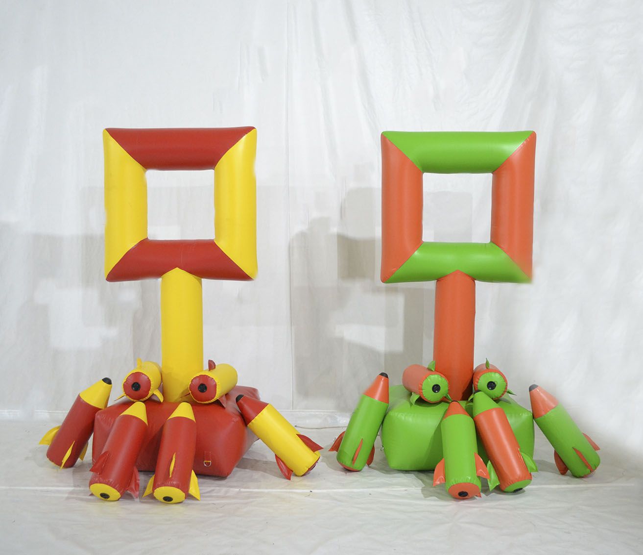 Надувной аттракцион предлагает испытание на меткость. Прямоугольный экран на вертикальной стойке можно задействовать в многоэтапных эстафетах или парных соревнованиях. В центр изделия забрасываются легкие элементы в виде бомбочек.