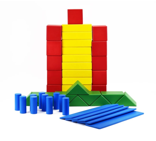 Кубик — 11 шт.;, Кирпичик — 10 шт.;, Треугольник — 10 шт.;, Цилиндр — 10 шт.;, Пластина — 5 шт