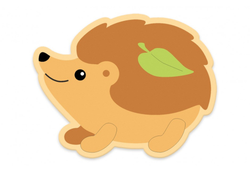 Настенный декор в виде улыбающегося ежа подходит для мебельных изделий и стен в ДОУ. Жизнерадостный персонаж вызывает интерес к животному миру.