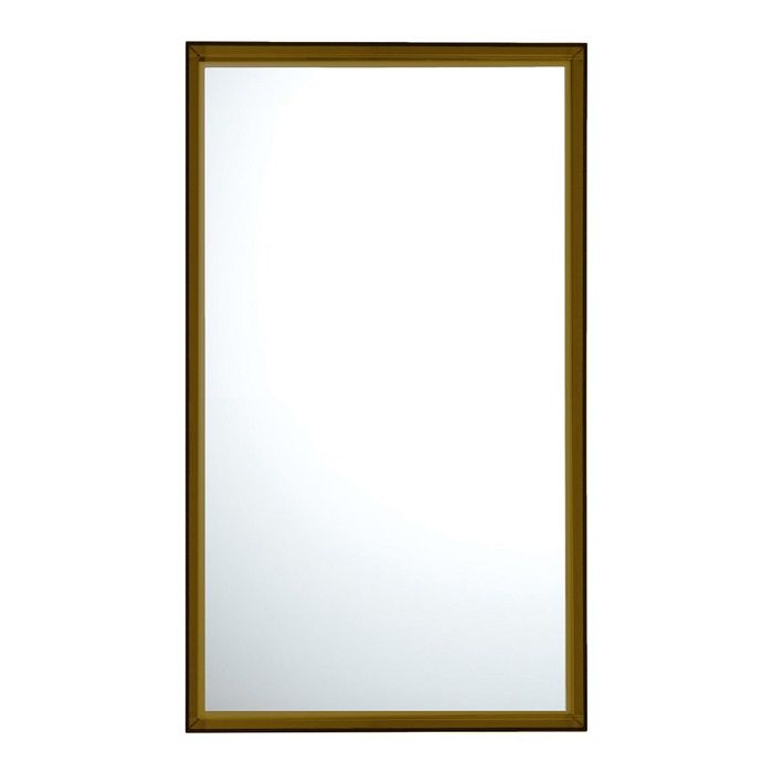 Настенное зеркало прямоугольной формы обрамлено пластиковым багетом нейтральных цветов и фактур.