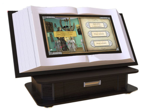 Мультимедийная книга устанавливается в музеях и библиотеках, коридорах, выставочных комплексах. Наполнение определяется целью пользователя. Материалы для демонстрации загружаются самостоятельно или заказываются дополнительно.