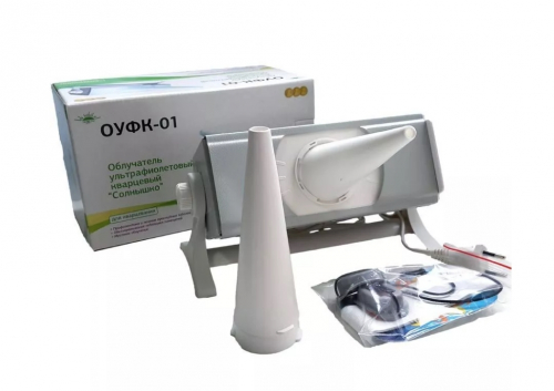 Дуговая лампа высокого давления помещена в устойчивый настольный корпус. Уровень облученности на расстоянии 700 мм от прибора – 0,04 Вт/м2. За 20-30 минут работы производительность кварцевания достигает 30 м3.
