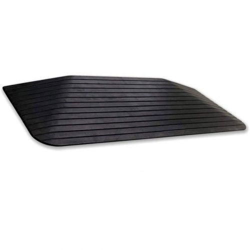 Гладкий пандус со скошенными углами подходит для улиц и помещений, в том числе, ванных комнат. Поставляется в черном цвете. Не скользит, устанавливается без монтажа. Пропускает тележки, коляски, скутеры. Грузоподъемность составляет 750 кг. Осадки и грязь отводится по специальным каналам. Транспортировать пандус легко.