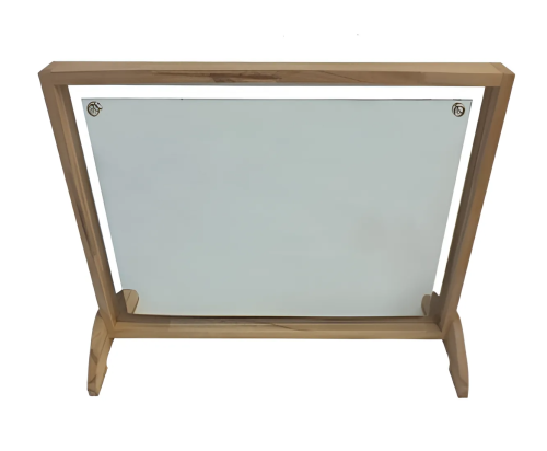 Мольберт на стойке шириной 400 мм оснащен отражающей поверхностью. Дугообразный верх конструкции украшен отверстиями. 2-хстороннее изделие служит рабочим полем художника и зеркалом.
