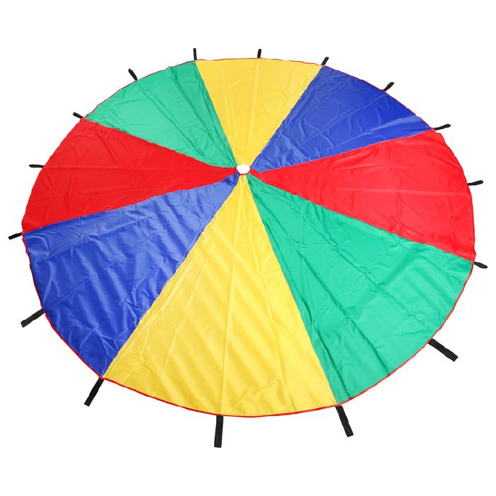 Игровой парашют для командных игр имеет 16 ручек и сумку для хранения 30х40 см.