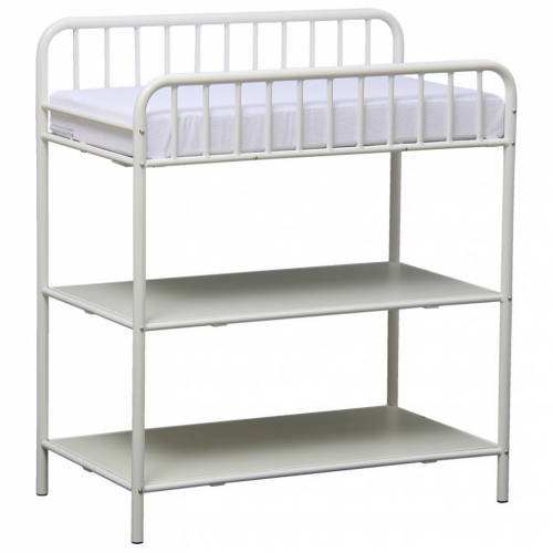 Столик оснащен 3-мя полками (по 430х820 мм) и матрасом (820х420 мм) на мембранной основе. Верхняя площадка используется при пеленании ребенка, на нижних 2-х ярусах можно хранить пеленки и косметические средства. Конструкция на 4-х ножках устойчива, верхний ярус окружается закругленными решетчатыми бортами и боковыми перекладинами.