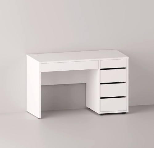 Столешница создает просторную поверхность для комфортной работы или занятий, а встроенные выдвижные ящики обеспечивают упорядоченное хранение необходимых материалов и принадлежностей.