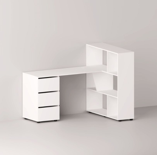Письменный стол сочетает в себе рабочую зону и систему хранения. Столешница служит удобной поверхностью для учебы или работы, позволяя разместить компьютер, учебники и канцелярию.