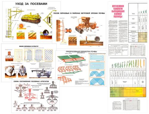 Плакаты предназначены для наглядной демонстрации различных этапов и методов ведения сельского хозяйства.