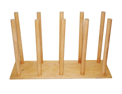 10 стержней на подставке с округлыми краями представляют собой основу для размещения перчаточных кукол. Изделие позволяет бережно хранить реквизит в одном месте; при выборе персонажа для детского спектакля не перекрывается обзор. Предмет поставляется в натуральном цвете.