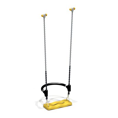 К гибкому подвесу из оцинкованной цепи прикрепляется сиденье. Посадочное место оборудовано спинкой.