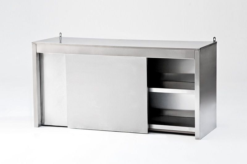 Полка технологическая навесная для профессиональной кухни, выполнена полностью из листовой нержавеющей стали в защитной пленке. Отличается оригинальной конструкцией с различными типоразмерами, закрытый вариант – укомплектованы дверки купе.