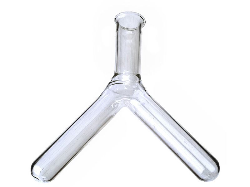 Пробирка используется в химической лаборатории для наблюдения за реакцией 2-х веществ в замкнутом объеме. Прозрачная посуда с разветвлением на 2 колена присоединяется к датчику объема газа.