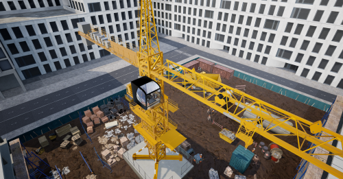 5. Крановщик — симуляция работы оператора башенного крана. Для выполнения задания нужно перенести груз с земли на крышу строящегося здания. Кран управляется при помощи контроллеров.