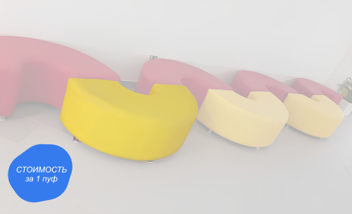 Полукруглый пуф на металлических опорах подойдет для вестибюля, коридора, зоны переодевания. Изгибы мягкой мебели позволяют рассаживать посетителей в шахматном порядке. Высота металлических ножек составляет 50 мм.