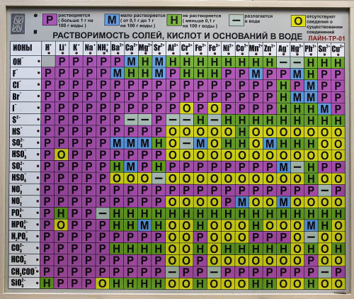 Растворимость солей, кислот и оснований в воде электронная таблица