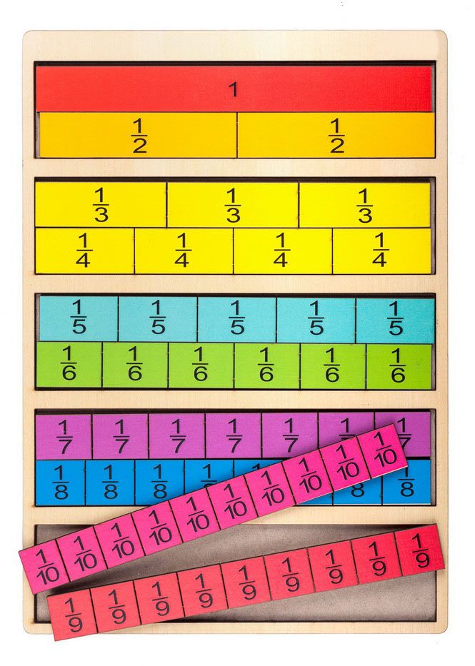 Представляет собой панель с большим прямоугольником (единица) и более мелкими (дроби). Позволят наглядно и в игровой форме изучить с детьми части единицы, подготовить их к математическим задачам. Рекомендуется для детей старшего дошкольного возраста, подготовительных групп и начальной школы.