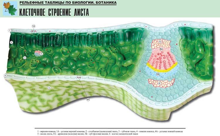 Рельефная таблица Клеточное строение листа